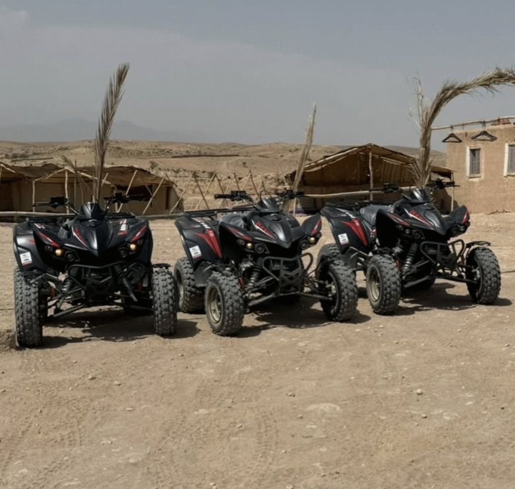 Partez pour une expérience inoubliable : 1h de quad dans le désert, balade en chameau, dîner typique et spectacle sous les étoiles avec transport inclus depuis votre hôtel ou votre résidence.
